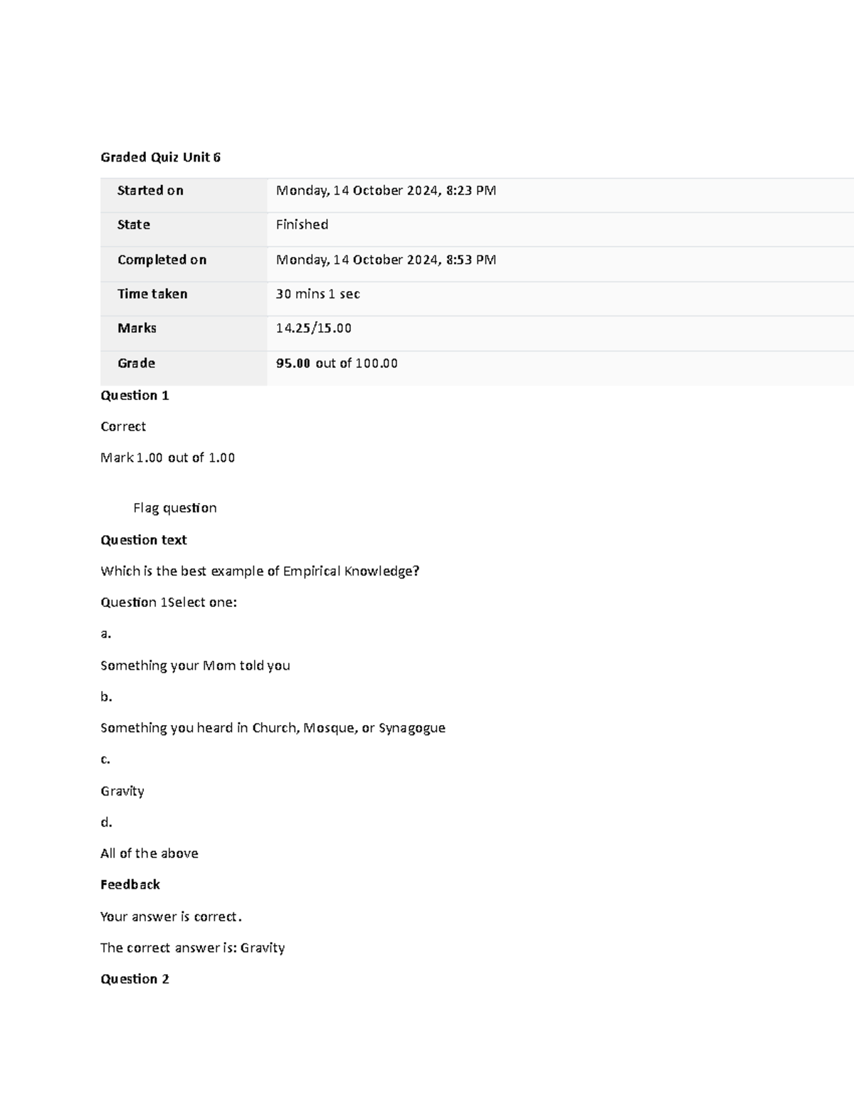 Graded Quiz Unit 6: Intro to Philosophy Insights PHIL 1402 - Studocu