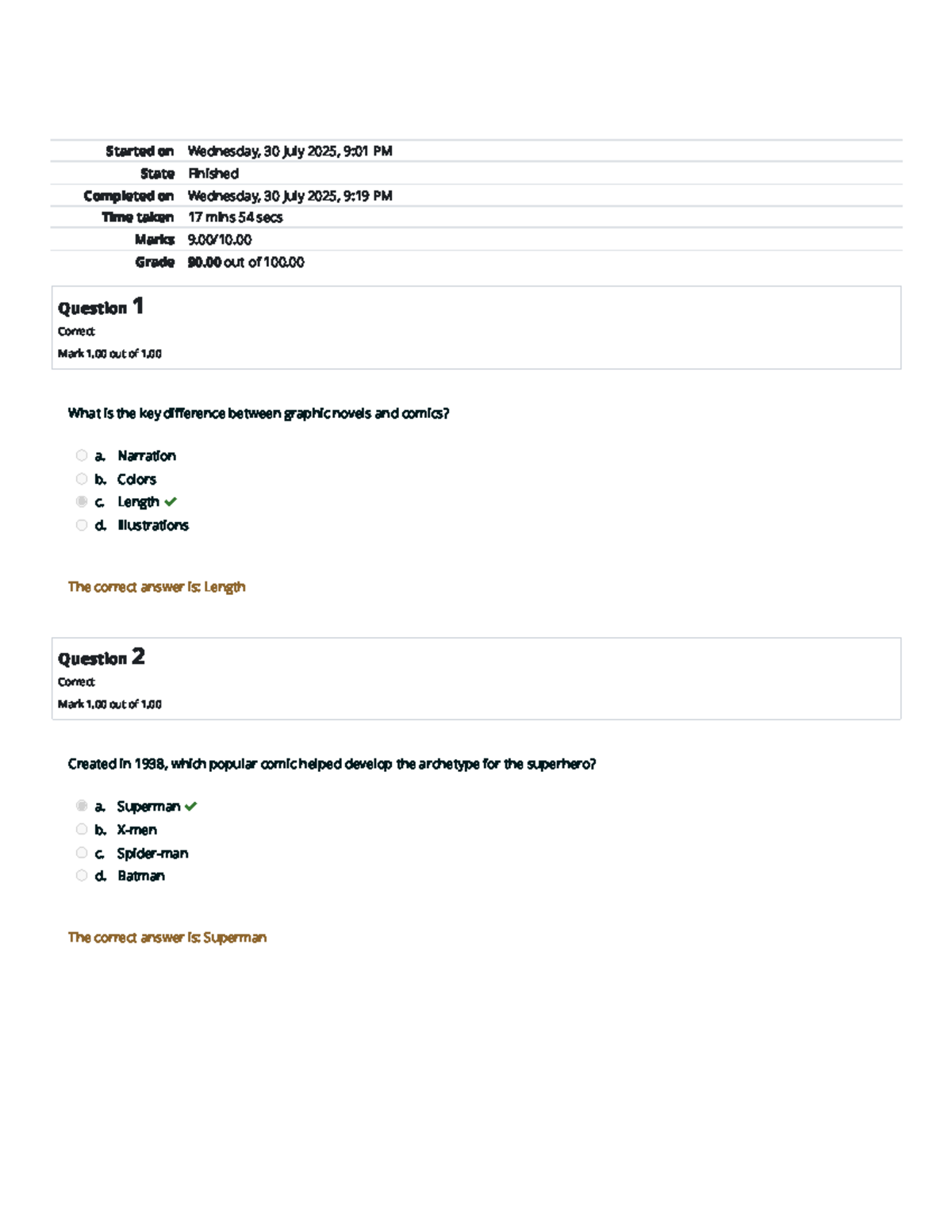 Graded Quiz Unit 6 - Question 2 Correct Mark 1 out of 1. Started on ...