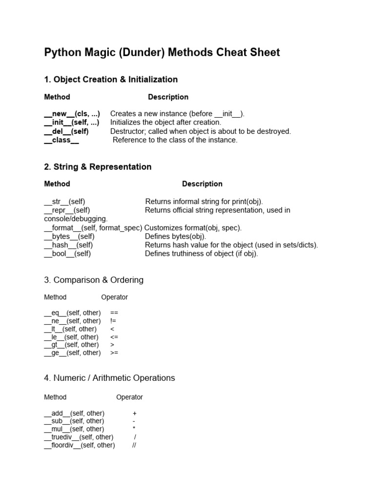 Python Dunder Methods Cheat Sheet | PDF | Software Development | Computing