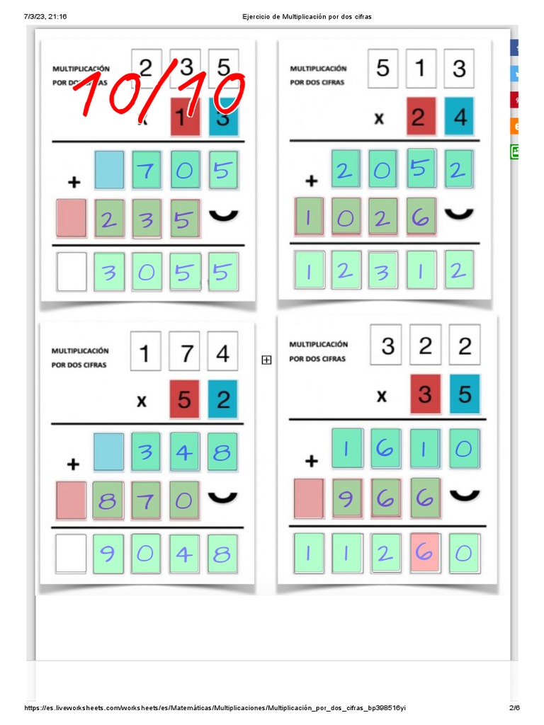 Ejercicio de Multiplicación Por Dos Cifras | PDF