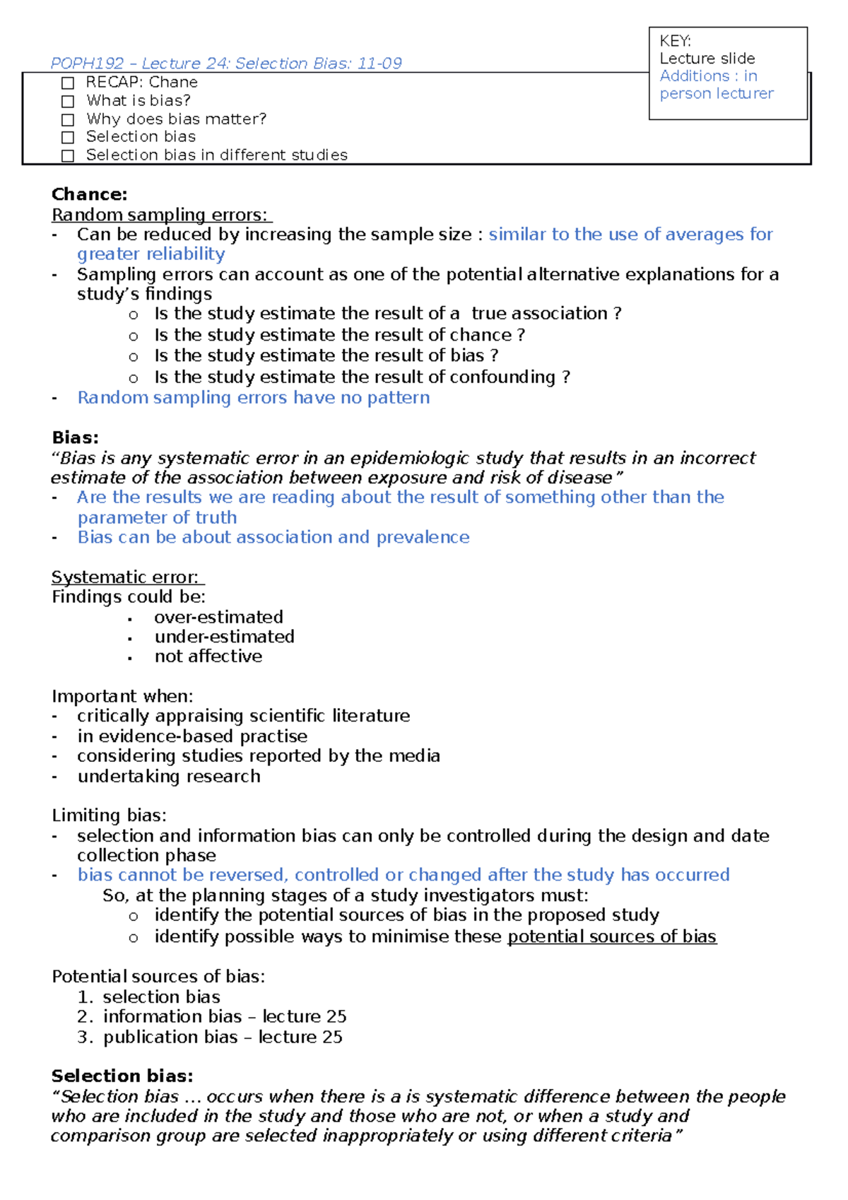 POPH192 Lecture 24 11-09 - POPH192 – Lecture 24: Selection Bias: 11 ...