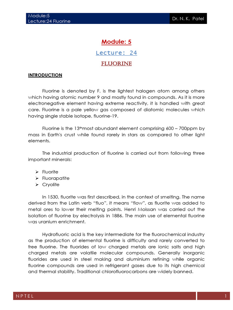 Lecture 24 Fluorine | PDF