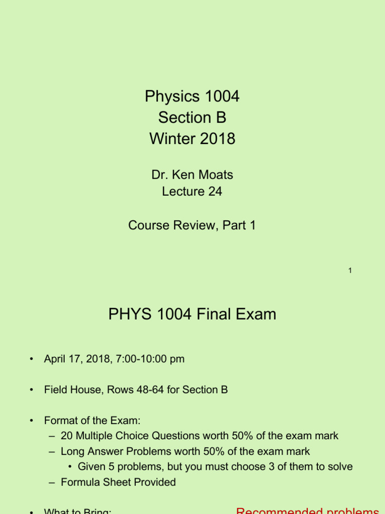 PHYS 1004B W2018 Lecture 24 | PDF | Electric Field | Flux
