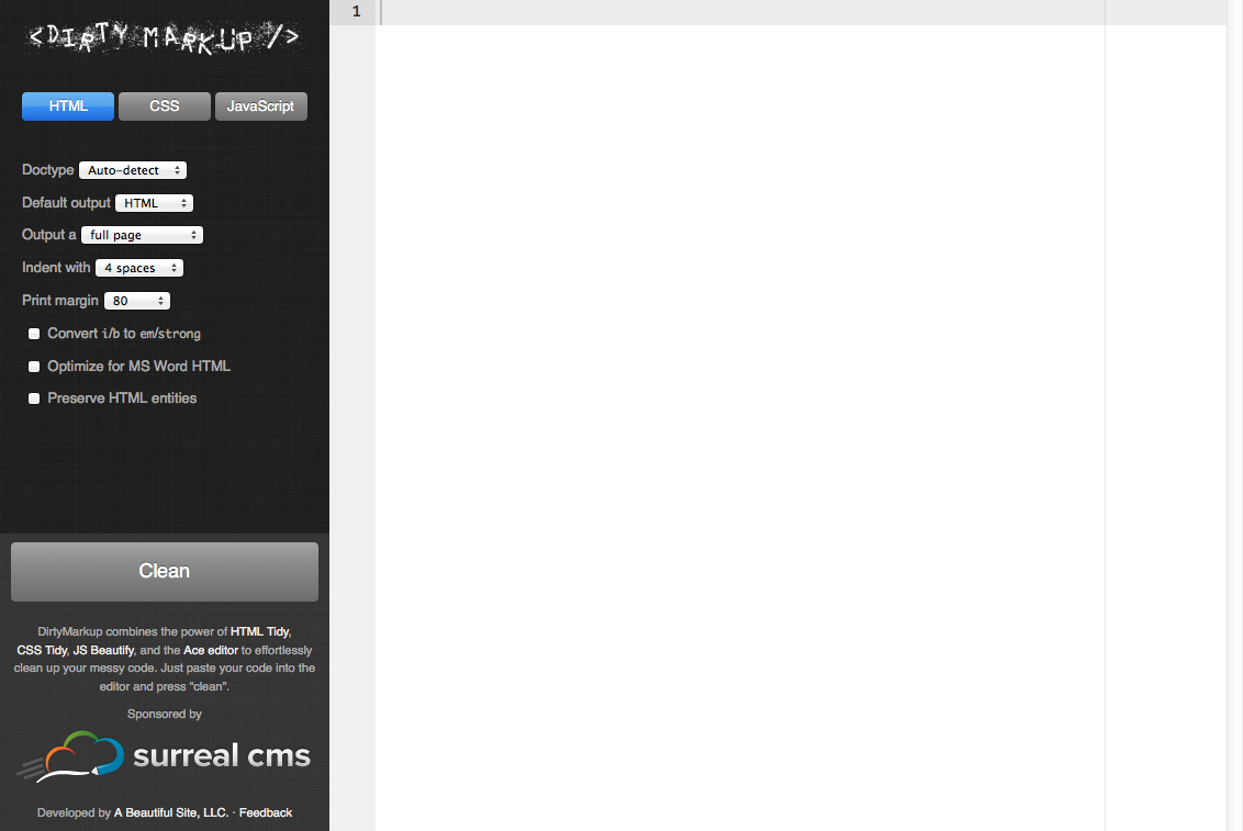 HTML,CSS,JSのコードを美しく整形し?部分の指摘もしてくれるDirty Markup | co-jin