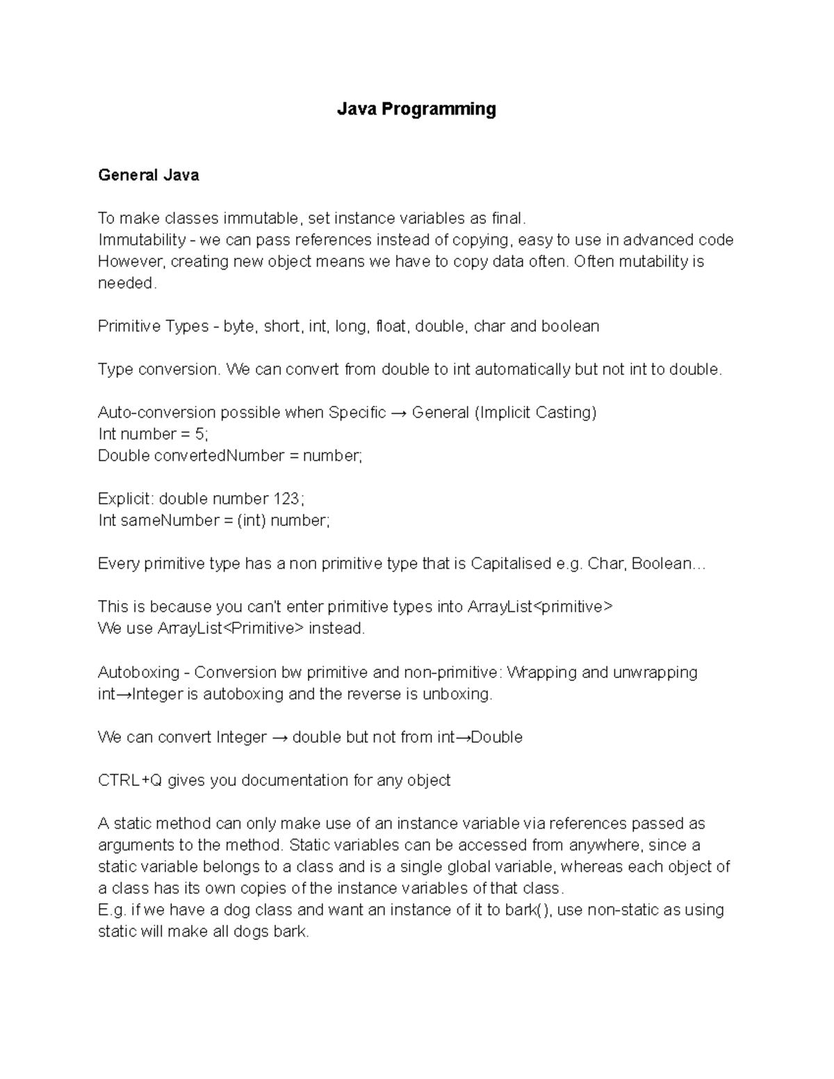 Java Programming - Comprehensive Final Review Notes - Studeersnel