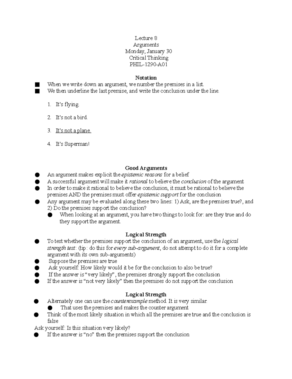 Lecture 8 - Lecture 8 Arguments Monday, January 30 Critical Thinking ...