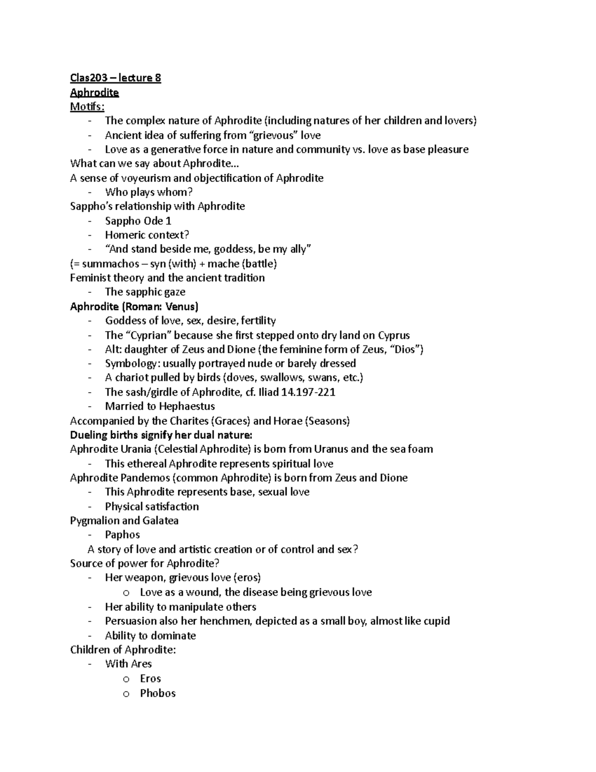 Lecture 8 - Clas203 – lecture 8 Aphrodite Motifs: - The complex nature ...