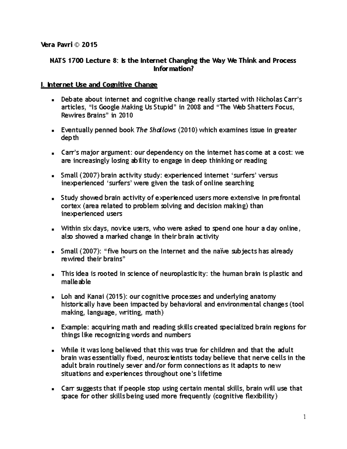 NATS 1700 Lecture 8 - Vera Pavri © 2015 NATS 1700 Lecture 8: Is the ...
