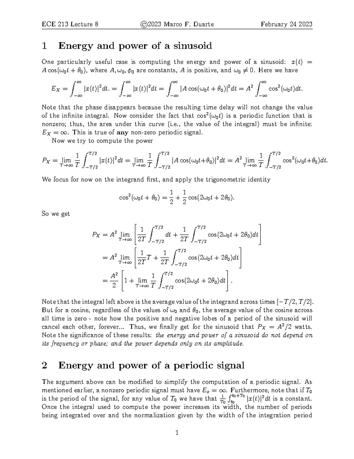 Lecture 8 - good notes - ECE 213 Lecture 8 ©2023 Marco F. Duarte ...