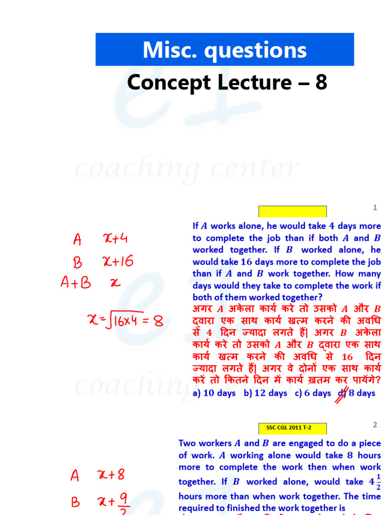 Time & Work Lecture 8 | PDF