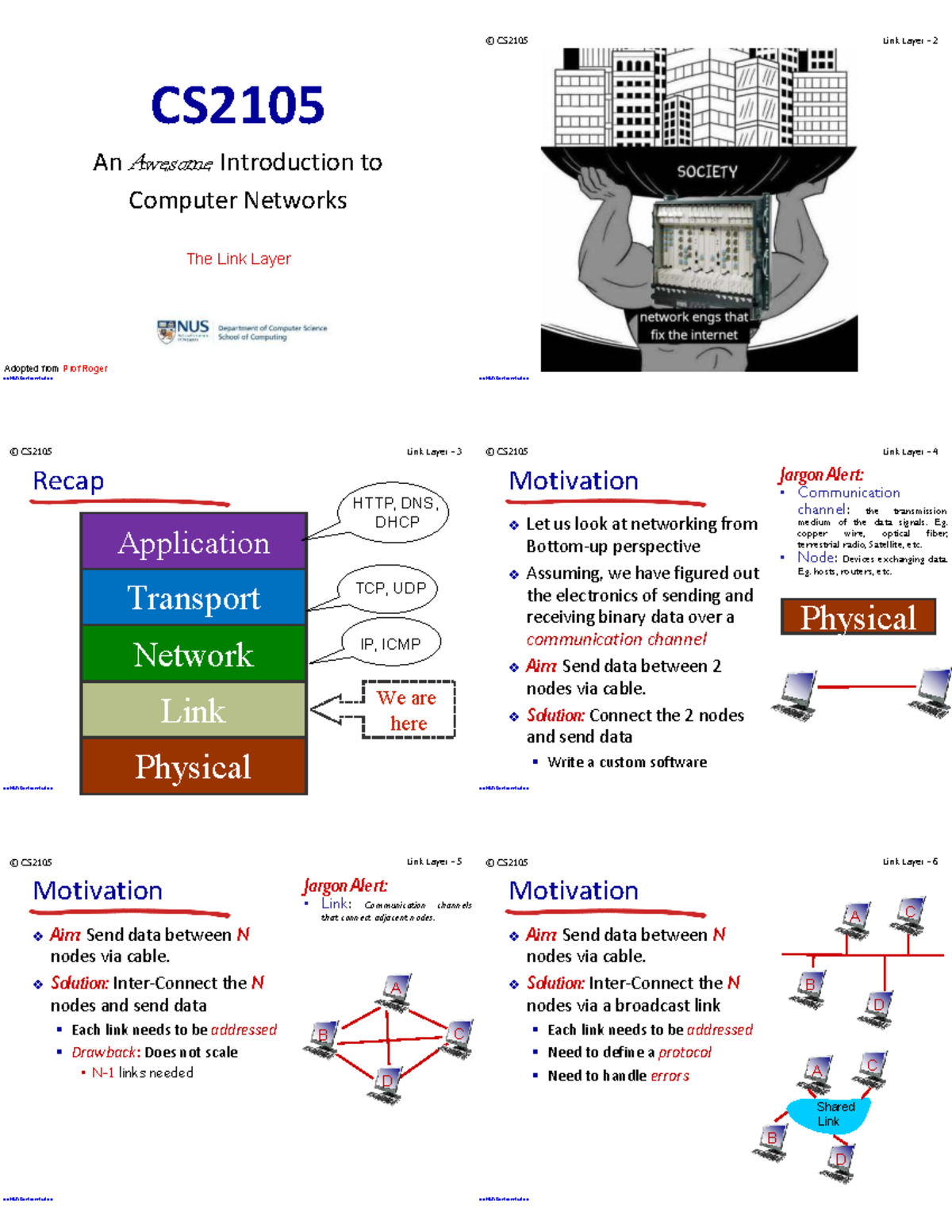 Lecture 8: Link Layer Overview and Protocols (CS2105) - Studocu