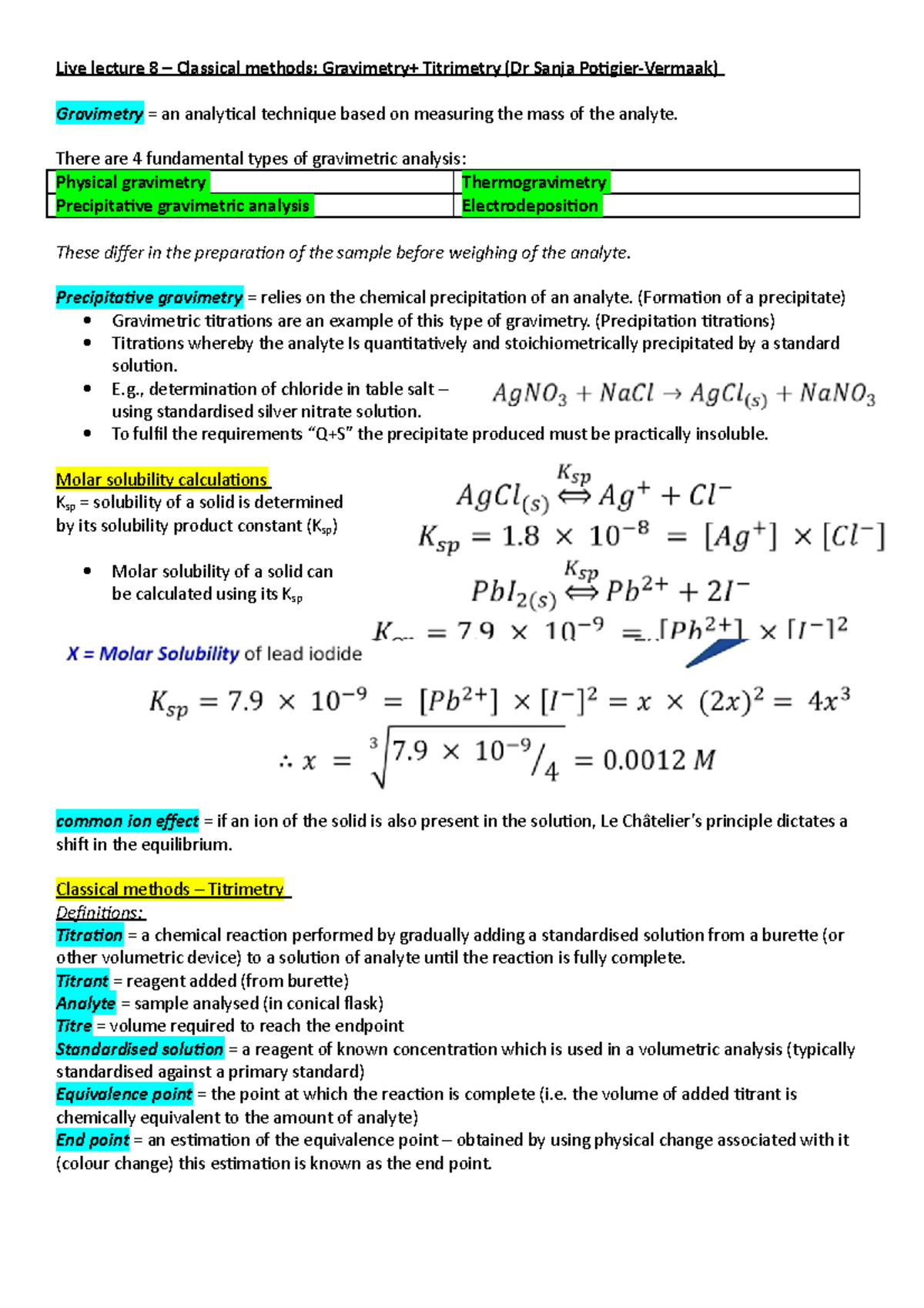 Lecture 8 - Classical Methods: Gravimetry & Titrimetry Insights - Studocu