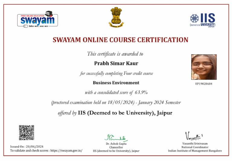 Added a certificate of SWAYAM - NPTEL 8 week course on Business ...