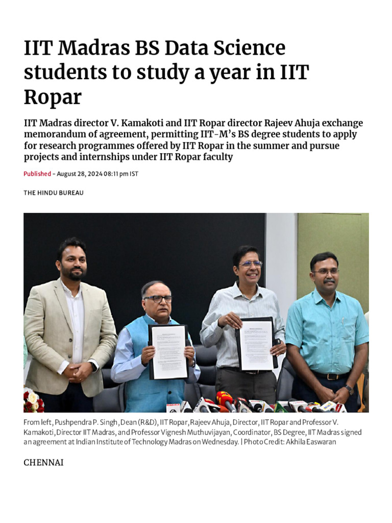 IIT Madras BS Data Science Students To Study A Year in IIT Ropar | PDF ...