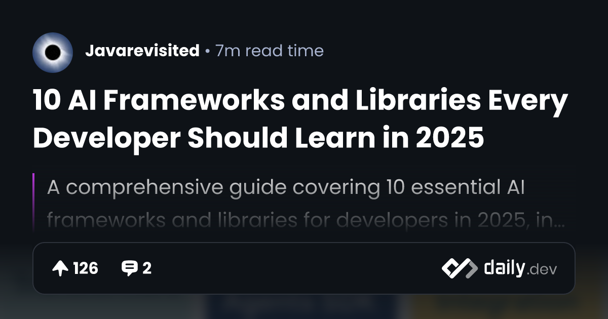 10 AI Frameworks and Libraries Every Developer Should Learn in 2025 ...