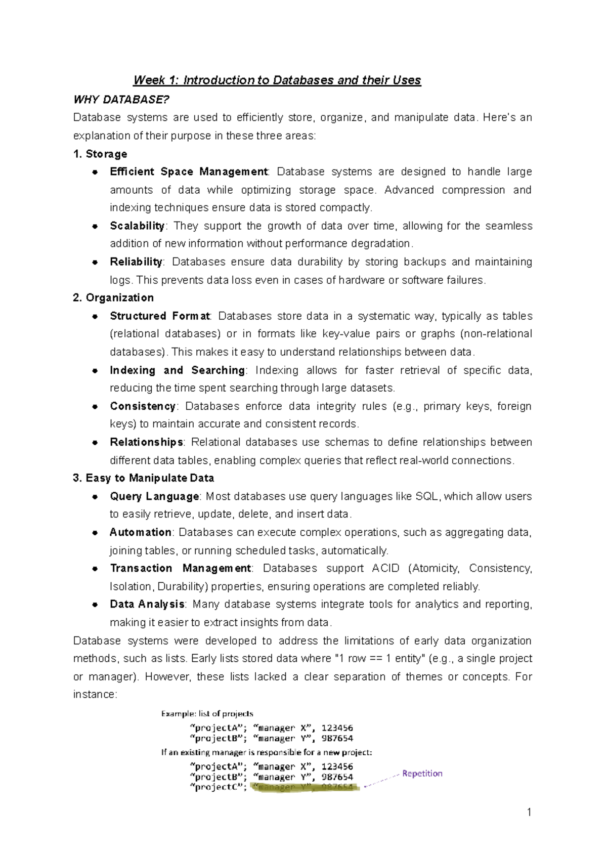 Database Systems (CS101) Week 1: Intro to Databases & Their Uses - Studocu