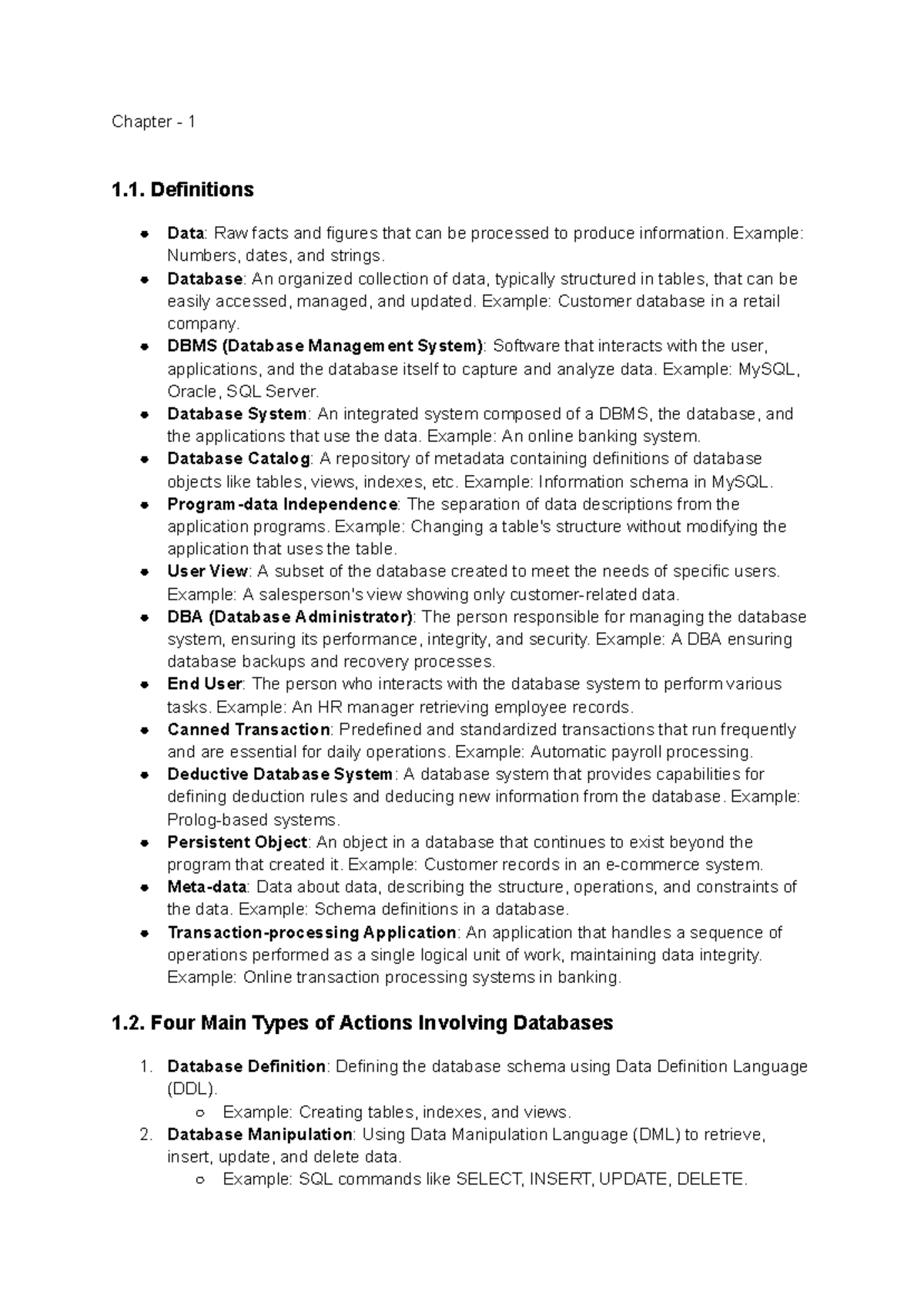 Database System Concepts (CS101): Chapter 1 Introduction Notes - Studocu