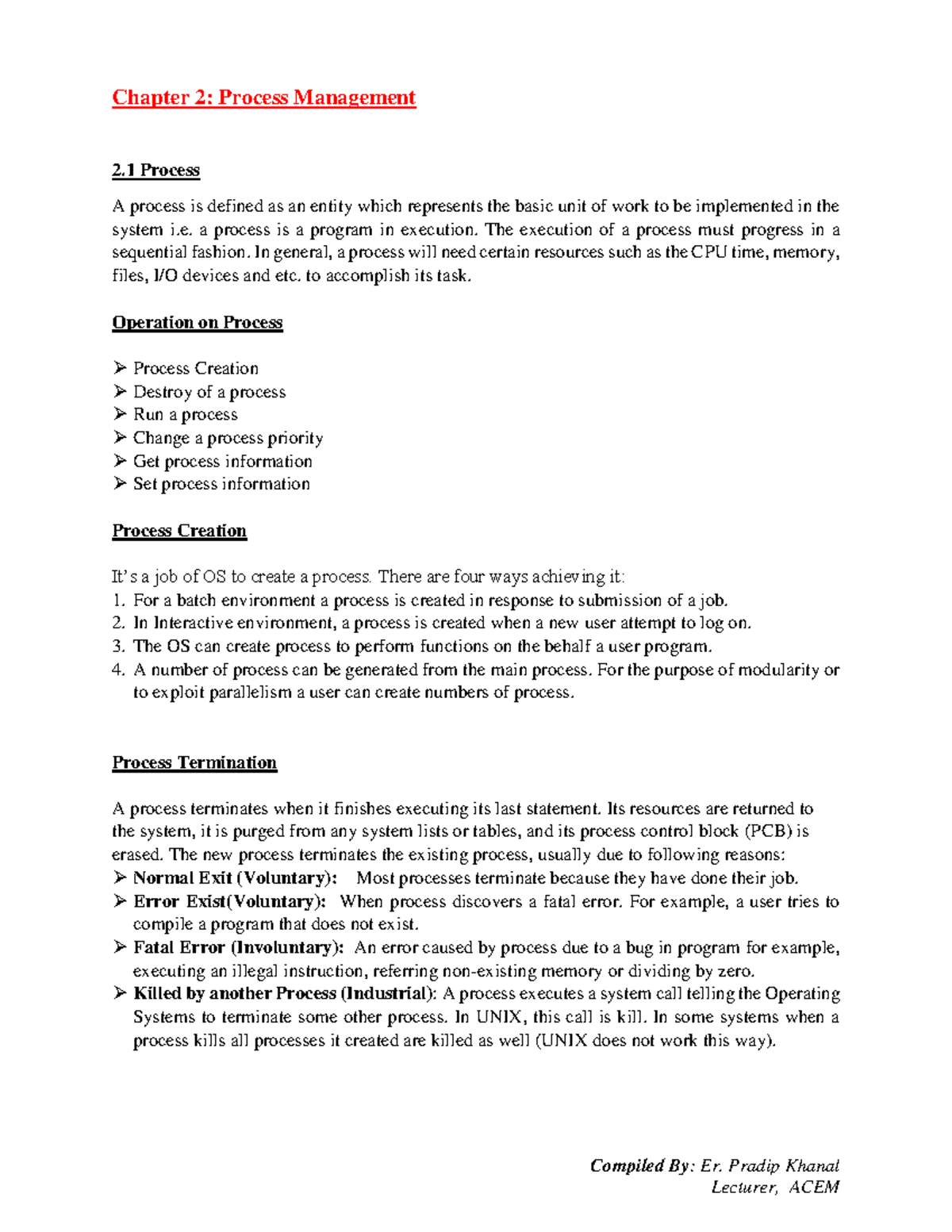 Chapter 2: Process Management in Operating Systems (CS101) - Studocu