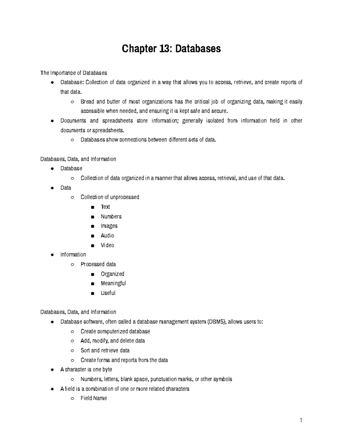 Chapter 13: Databases - Comprehensive Overview for Ms. Whitson - Studocu