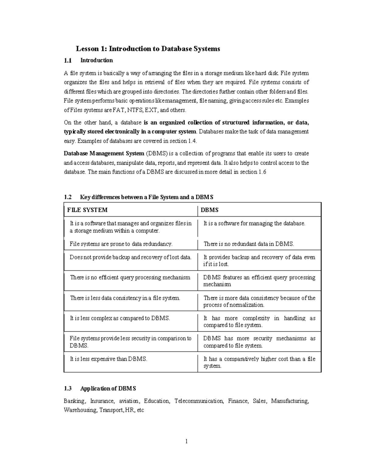 CS101: Lesson 1 - Intro to Database Systems and File Management - Studocu