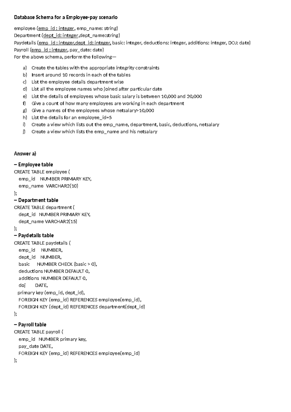 Database Schema & Queries for Employee Management (CS101) - Studocu