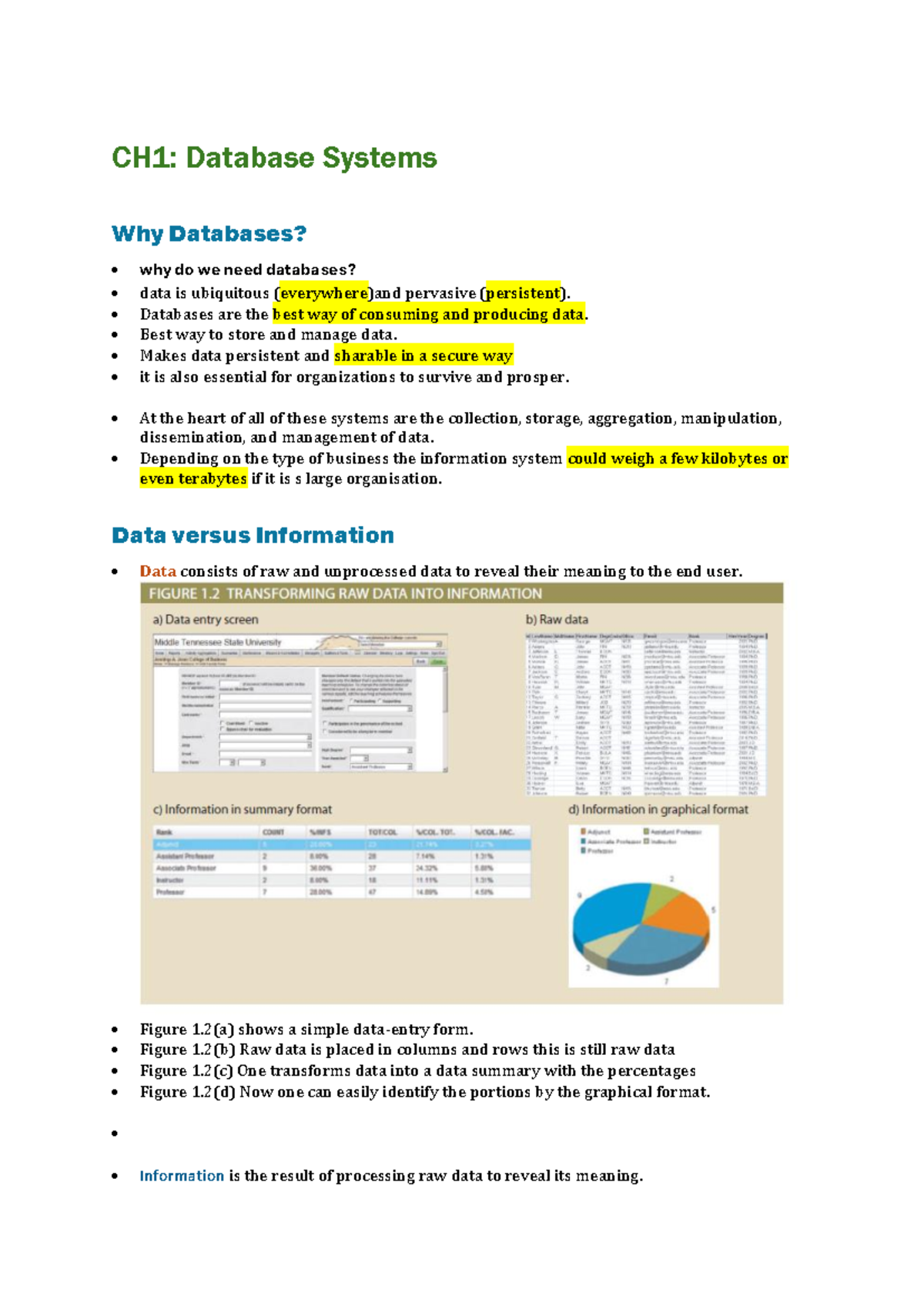 Database Systems - CH1: Database Systems Why Databases? why do we need ...