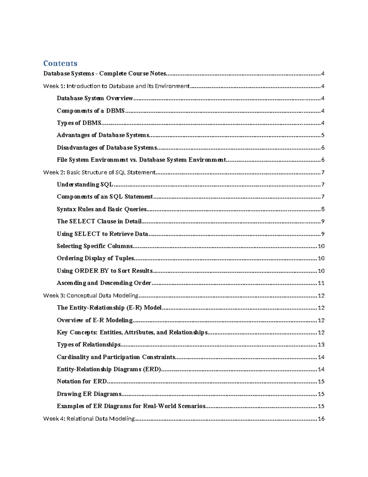 Database Systems (CS101) Complete Course Notes and Overview - Studocu