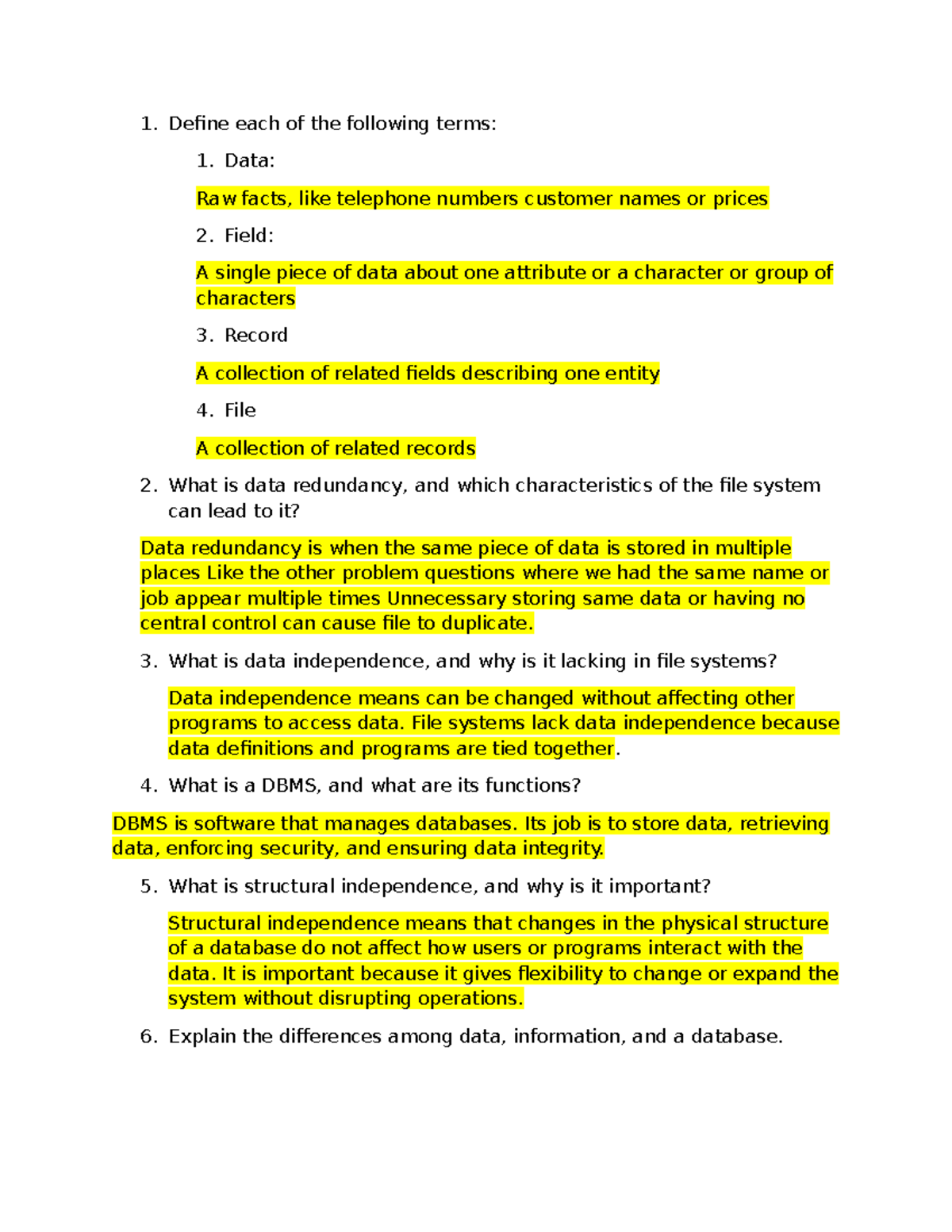 Question Bank-Answers: Data & Database Concepts (CS101) - Studocu