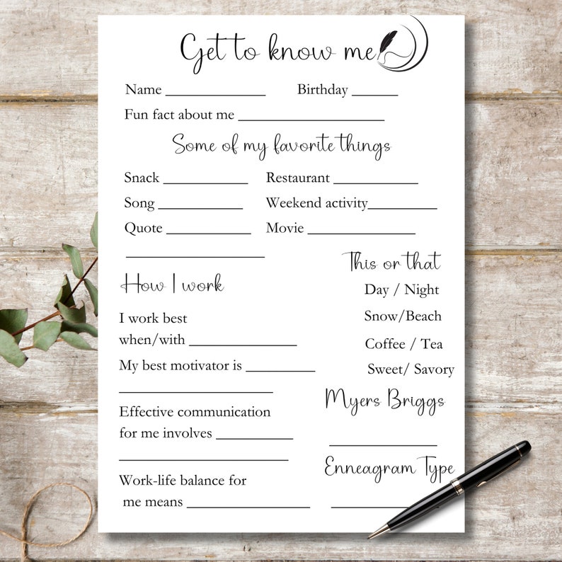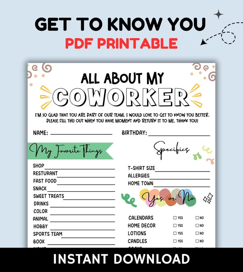 Getting to Know You Printable, Favorite Things Questionnaire, Coworker ...