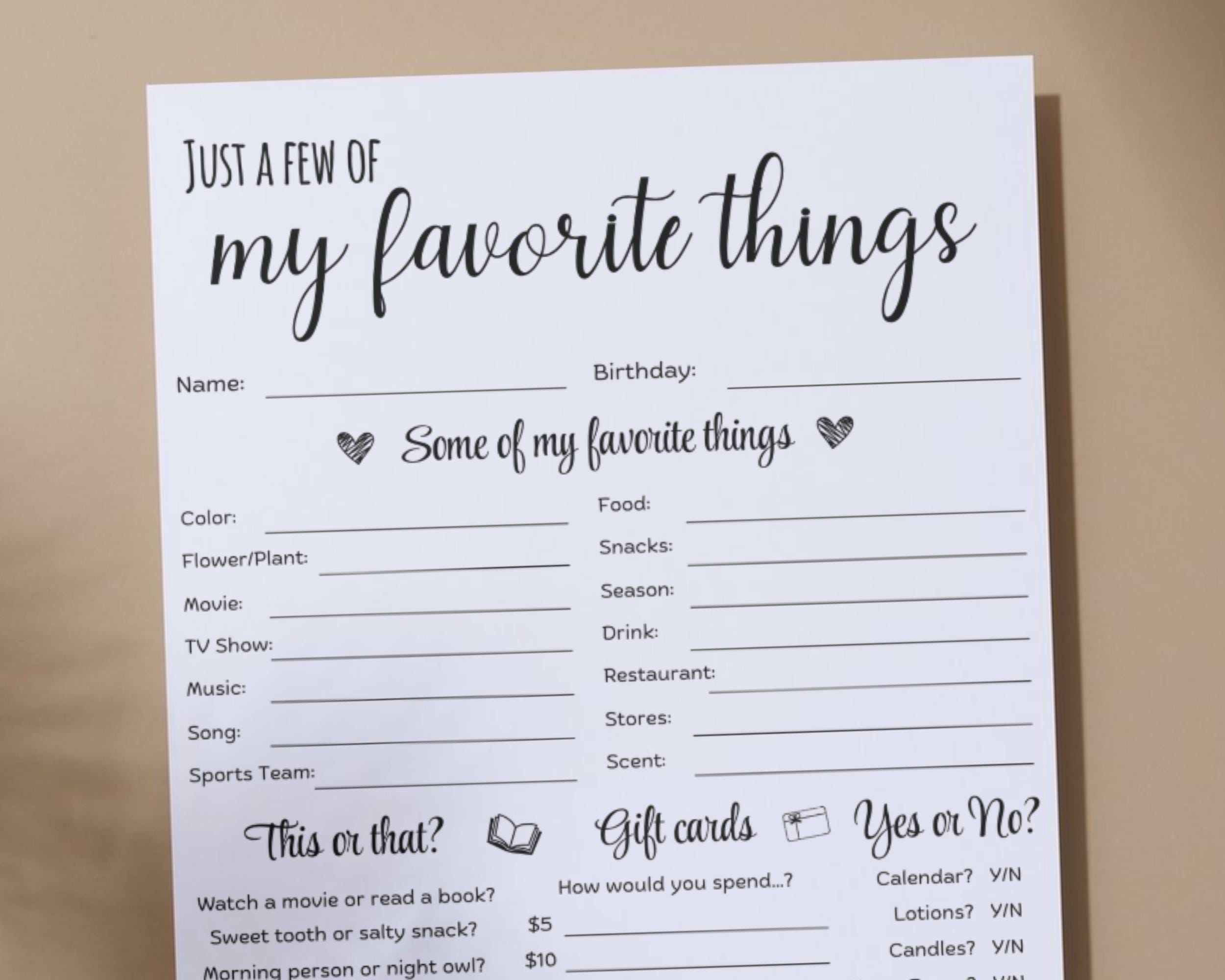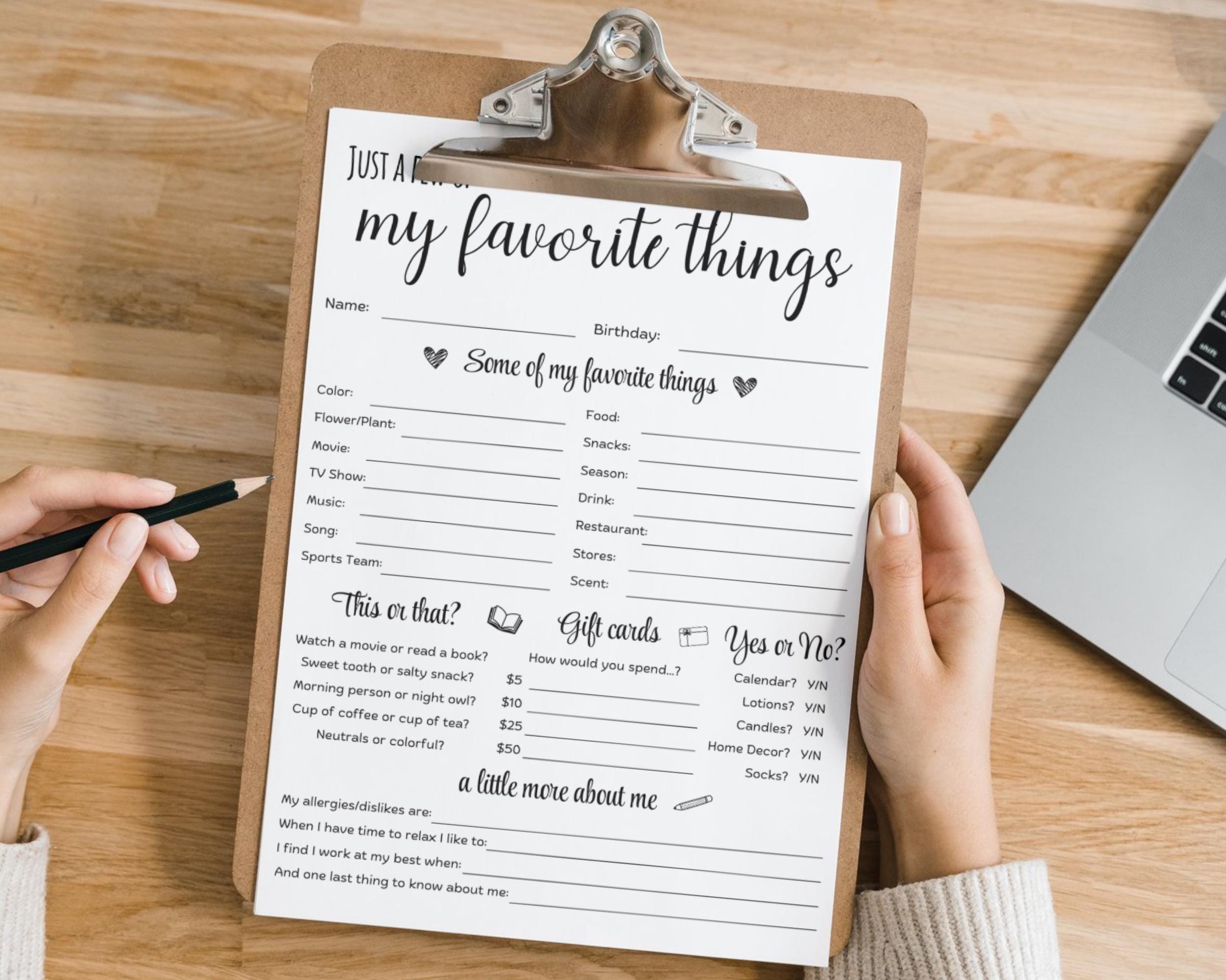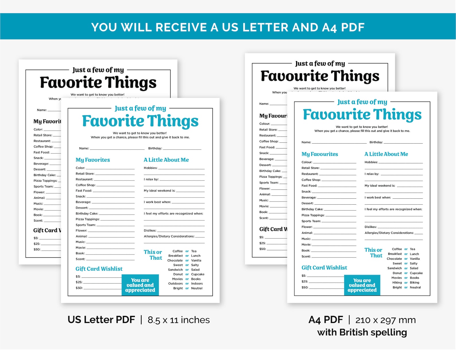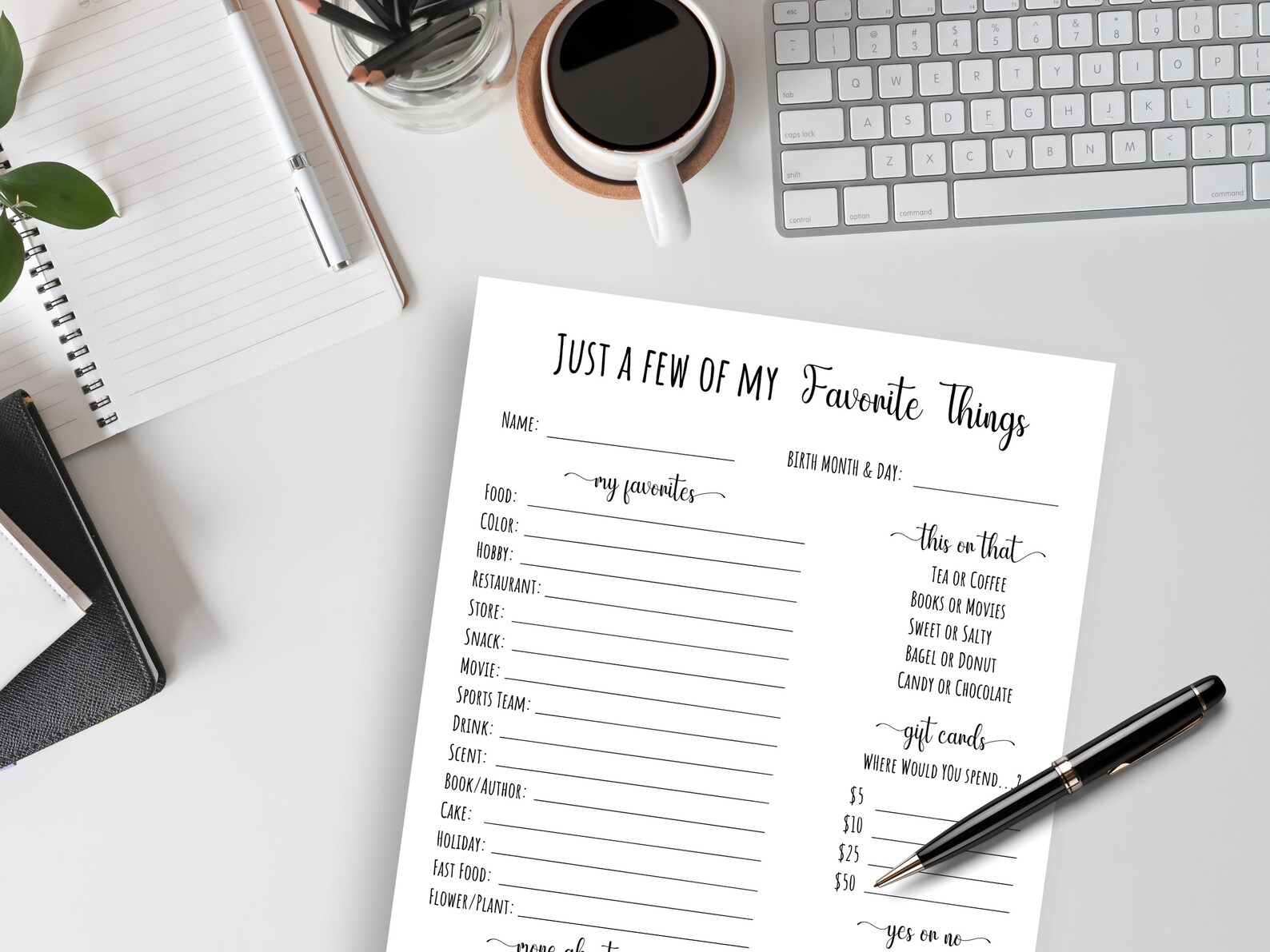 Free Printable Employee Favorite Things List - Educational Printable ...