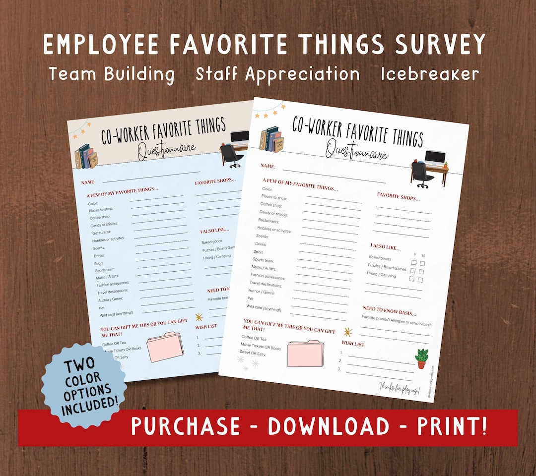 Employee Favorite Things Survey Coworker Questions Employee - Etsy