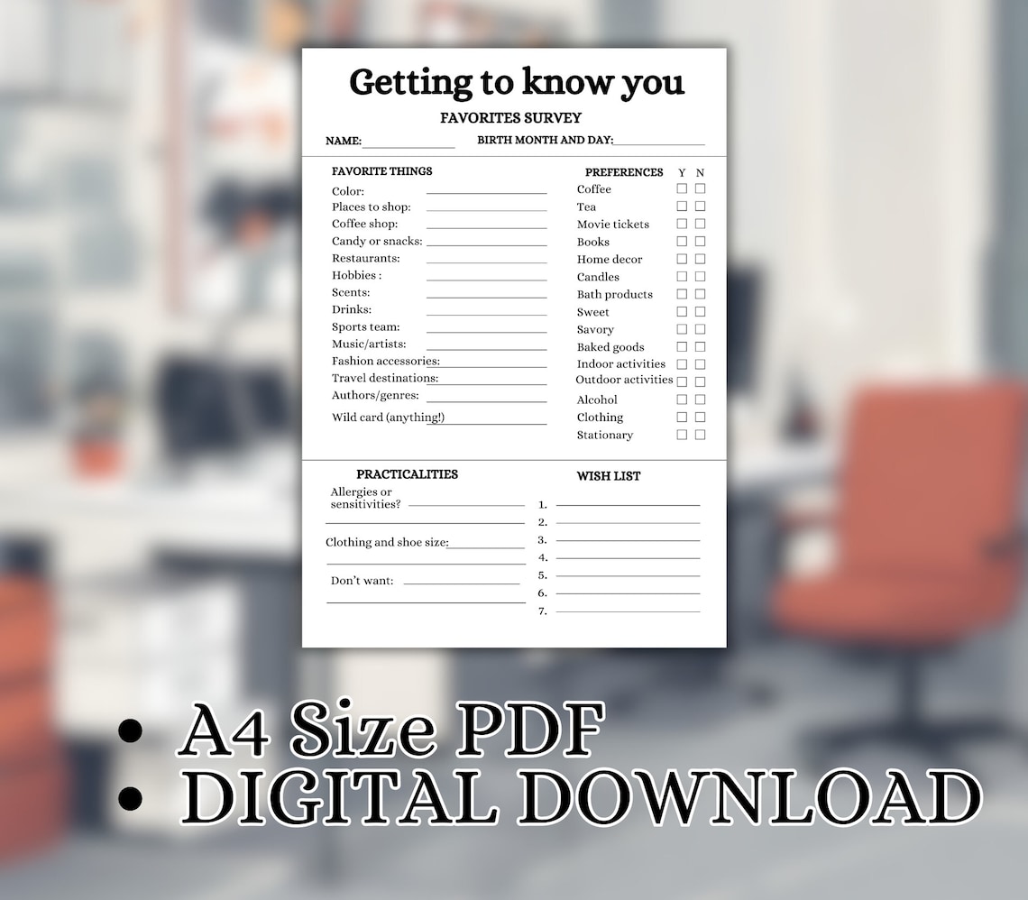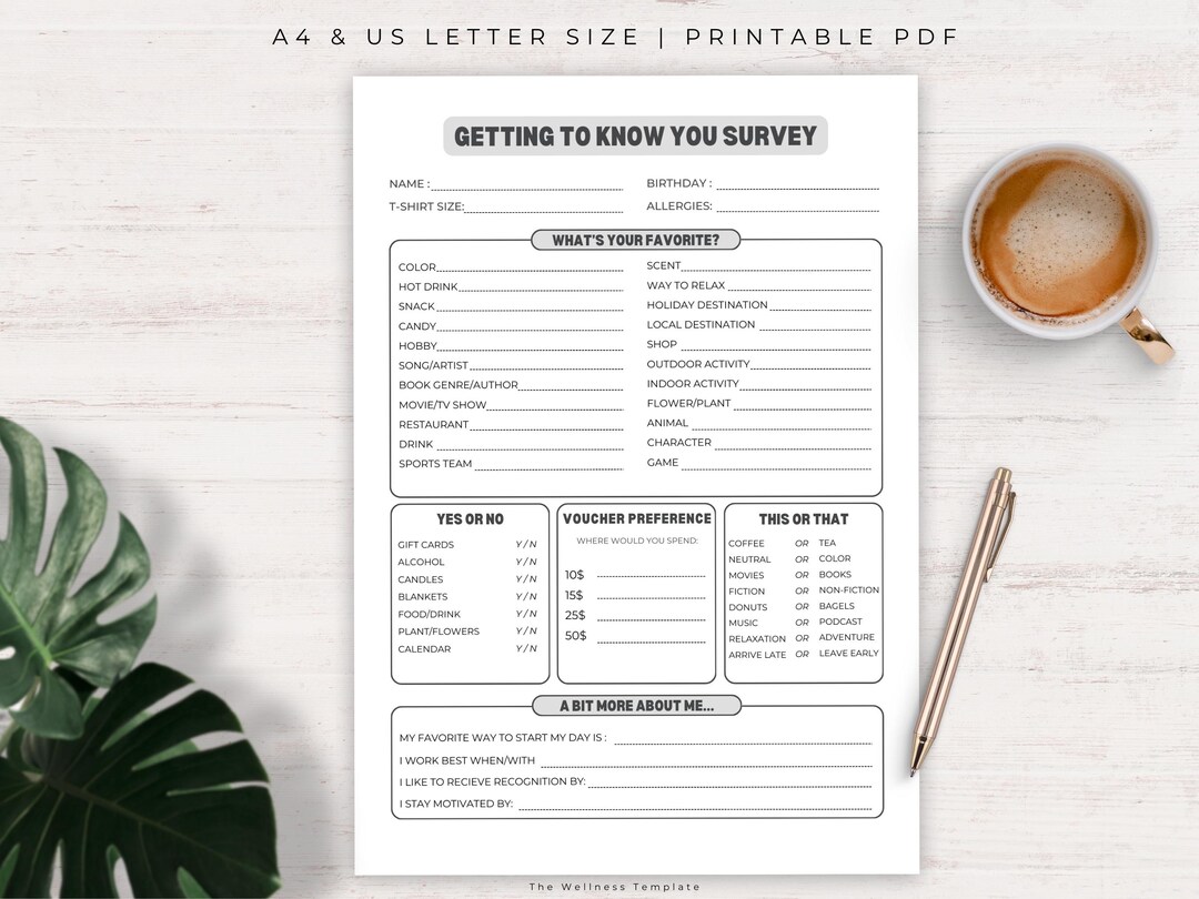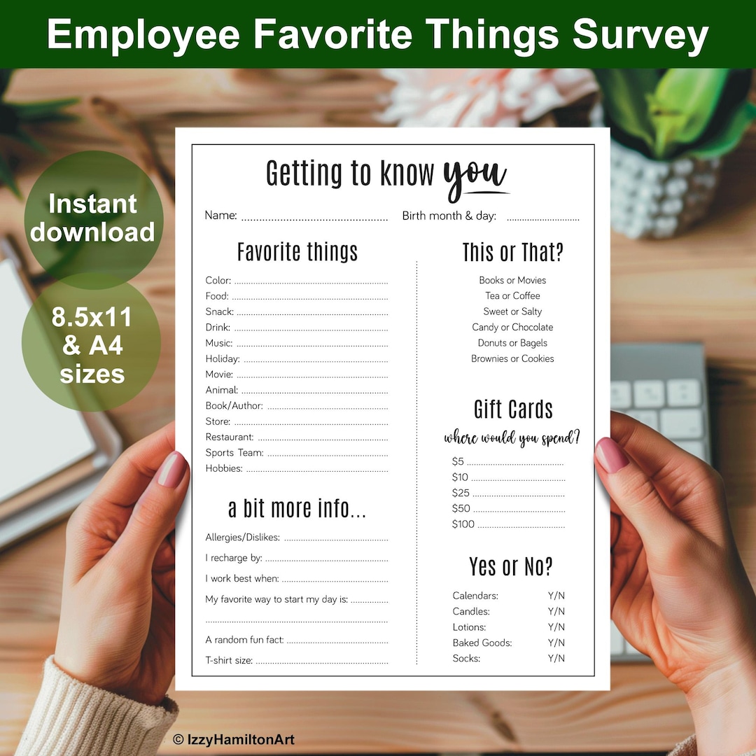 Employee Favorite Things Survey, Getting to Know You Printable, All ...