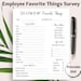 Employee Favorite Things Survey, Printable Coworker Questions, Employee ...
