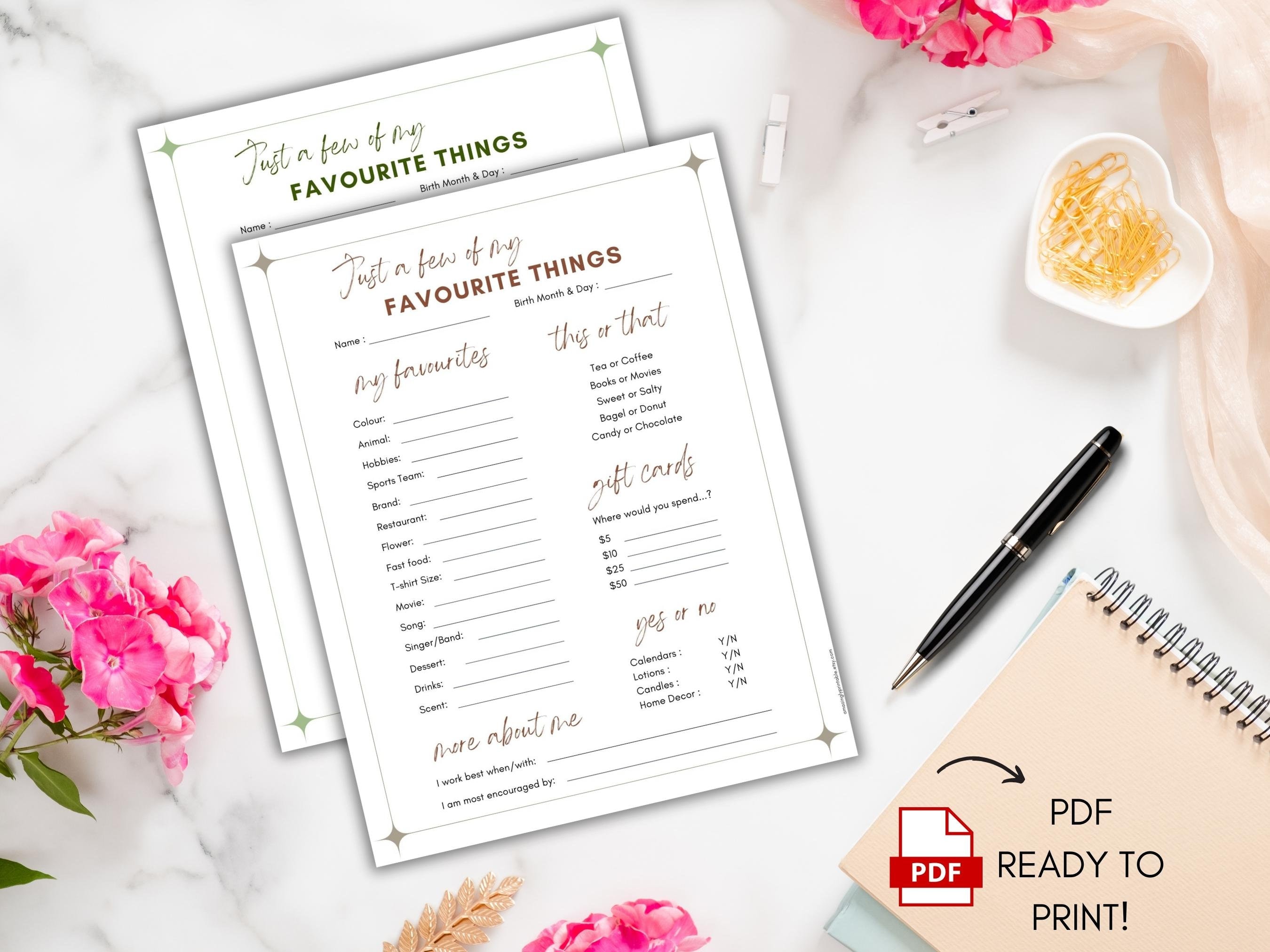 Printable Employee Favorite Things List | Plan Your Year Easily!