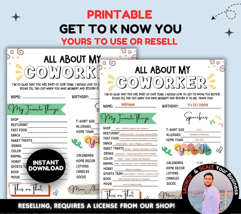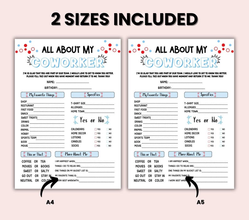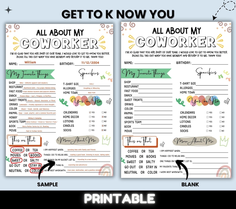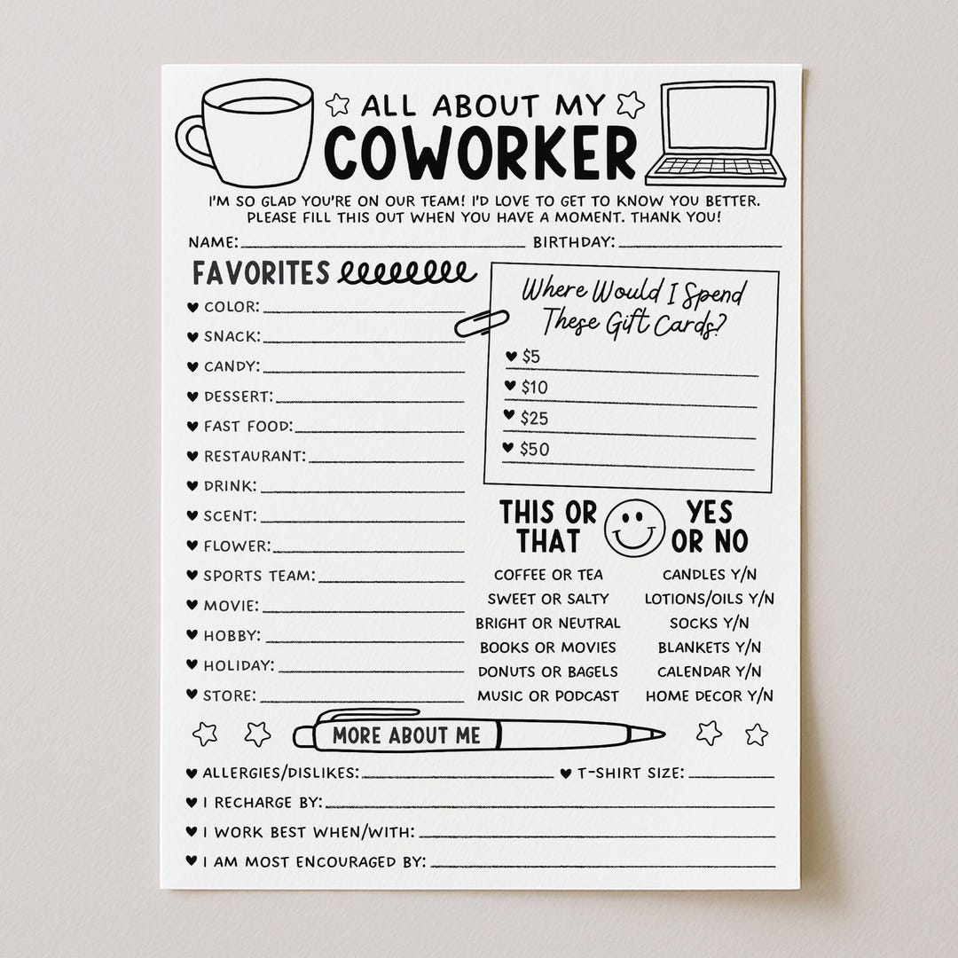 Coworker Questions Printable All About Me Employee - Etsy Canada