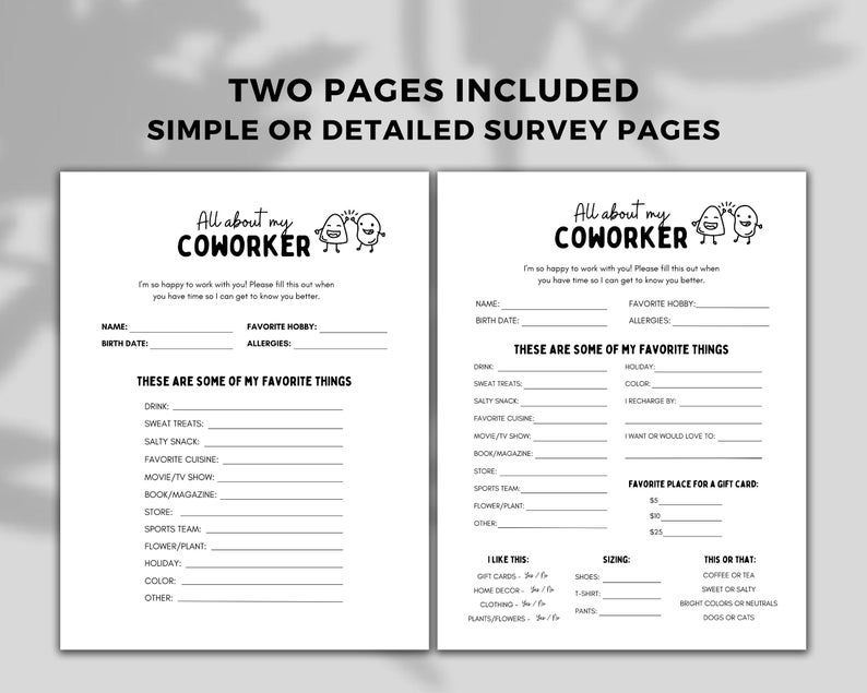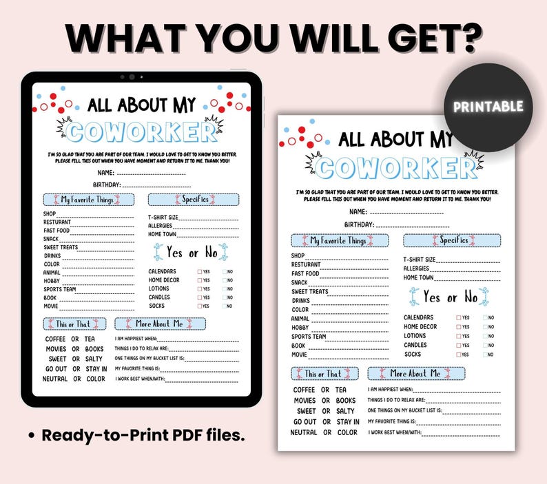 Employee Favorite Things Survey: Coworker Questionnaire (PDF Printable ...