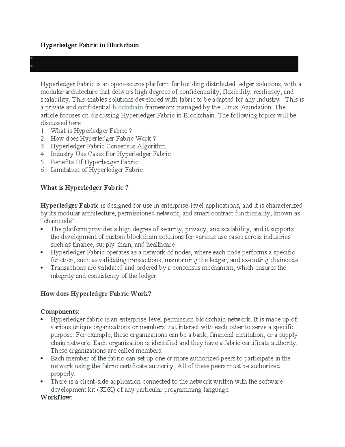 Hyperledger Fabric and It's Business Use-Cases - Blockchain Council