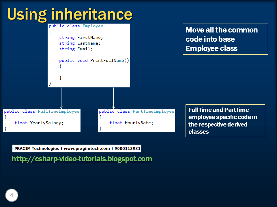 Sql server, .net and c# video tutorial: Part 21 - Inheritance