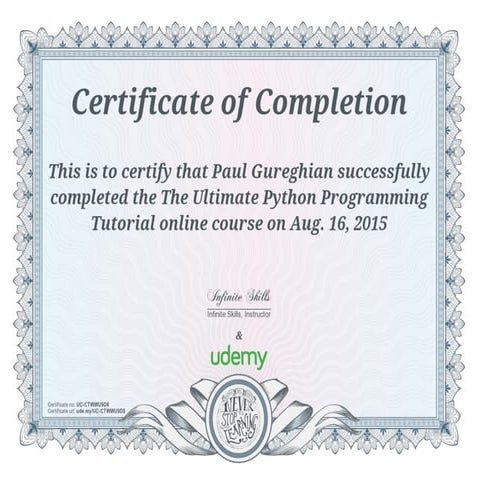 Certificate of Completion Lynda-Learning Python Course | PDF