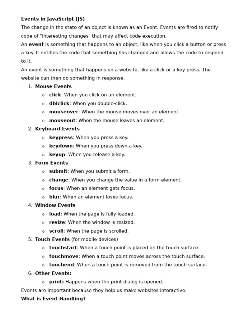 Based on this image's title: “Types of JavaScript Events Explained | PDF | Software Development ...”