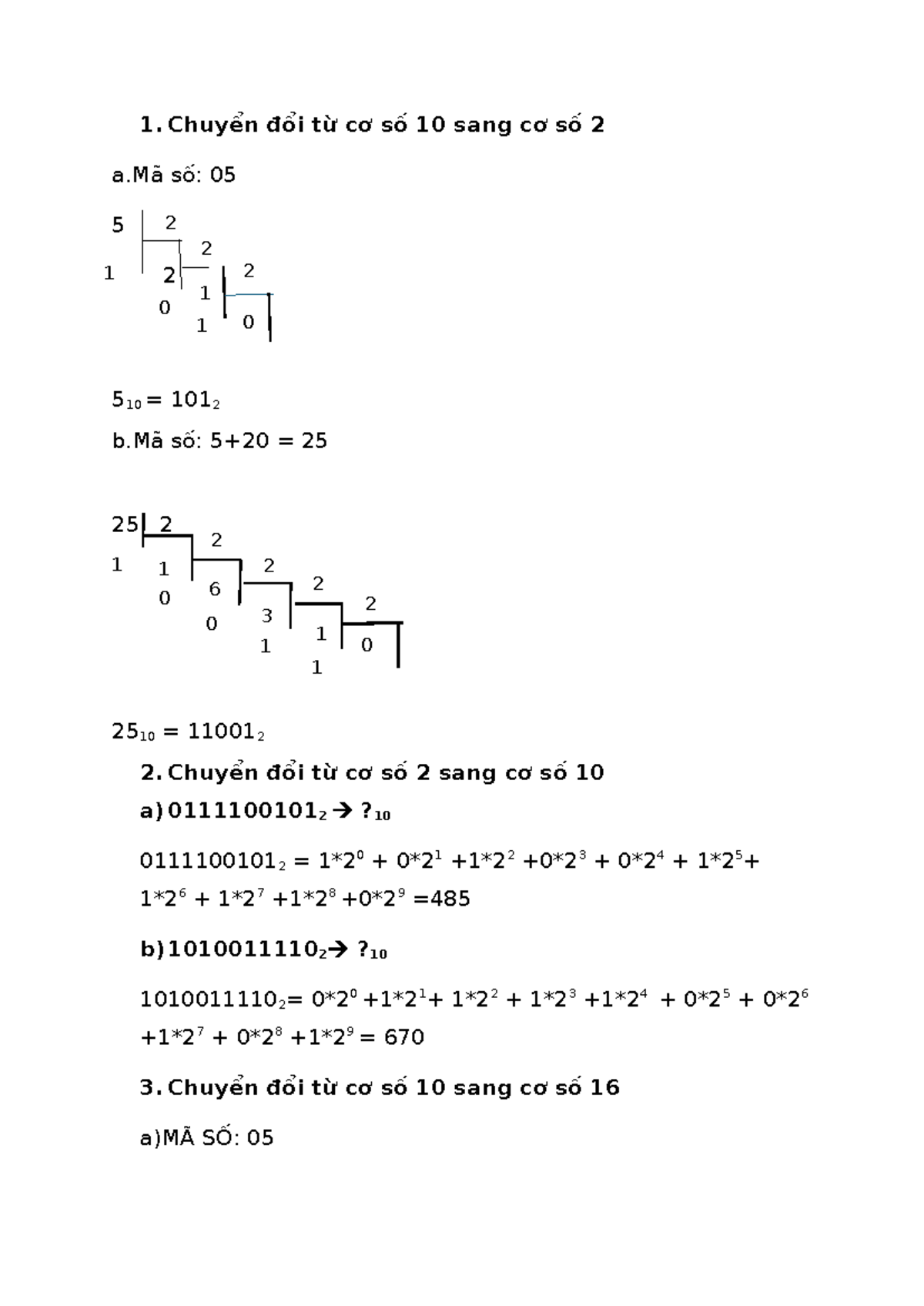 Bài Tập Nhập Môn CNTT: Chuyển Đổi Giữa Các Cơ Số - Studocu