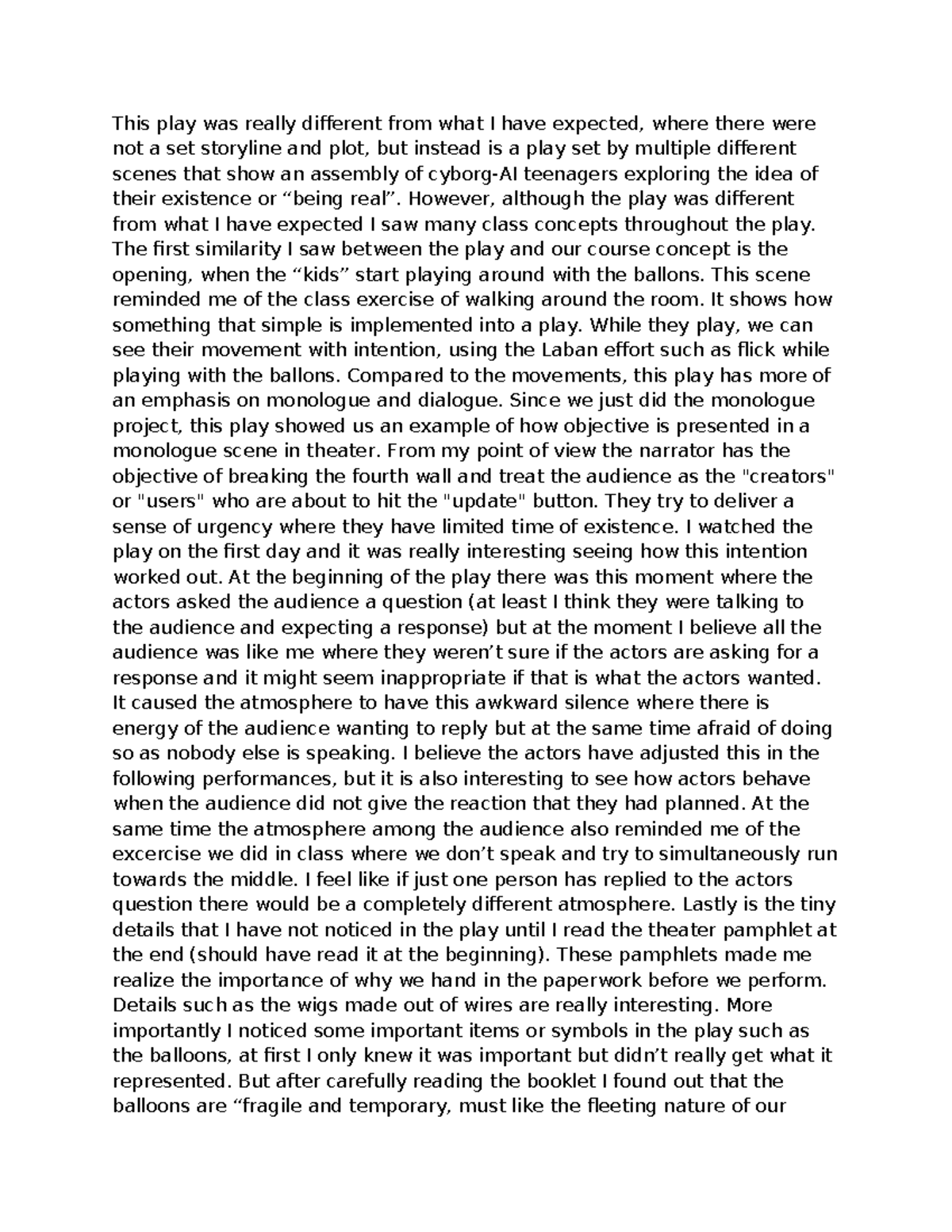 THTR 101 Play Reflection: Exploring Existence Through Performance - Studocu