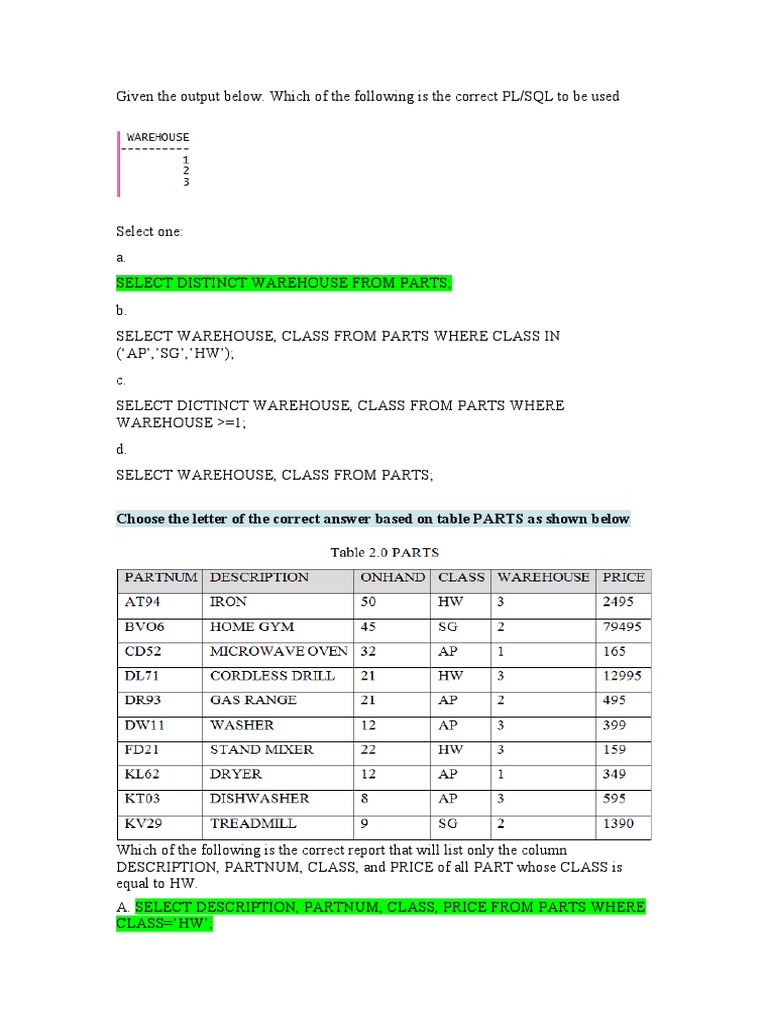 Database Management - SQL Practice Questions and Solutions | Course Hero