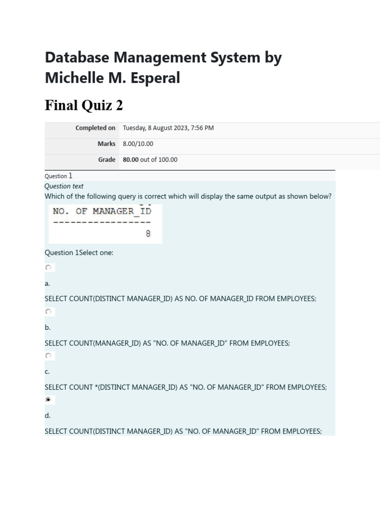 Mysql Quiz Results: 20% Correct | PDF | Data | Information Technology ...