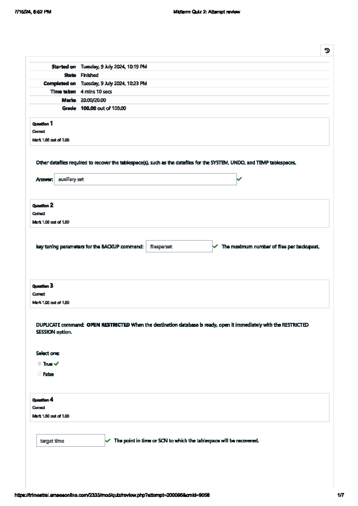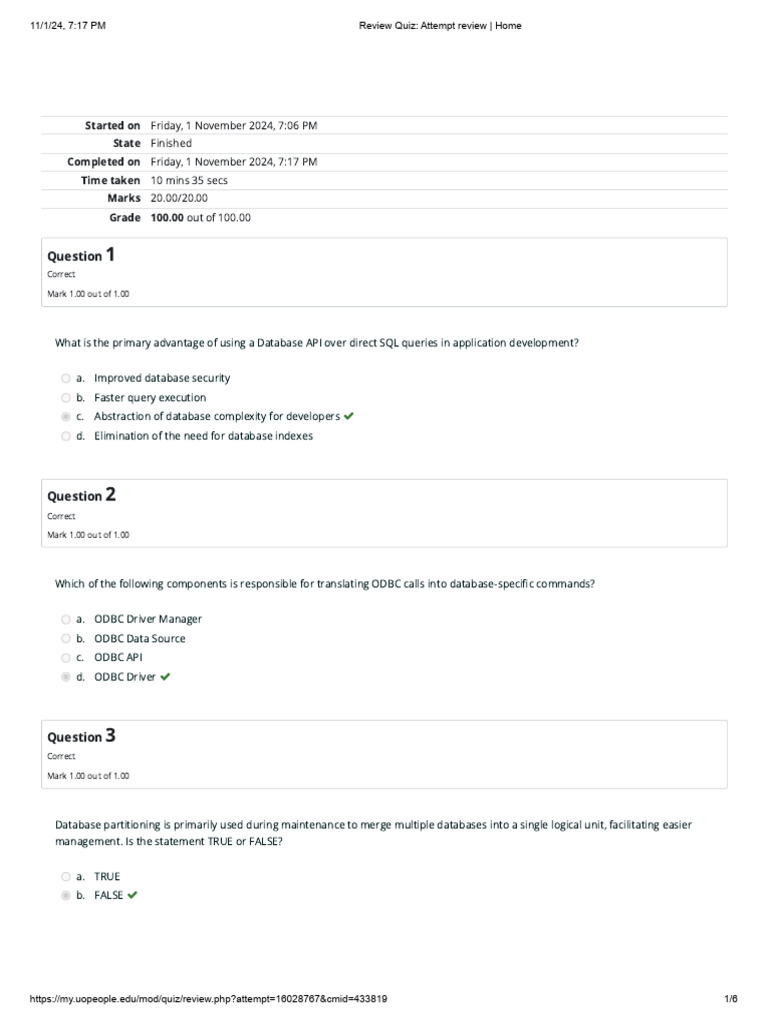 Database Midterm Quiz 2: Attempt Review and Key Concepts - Studocu