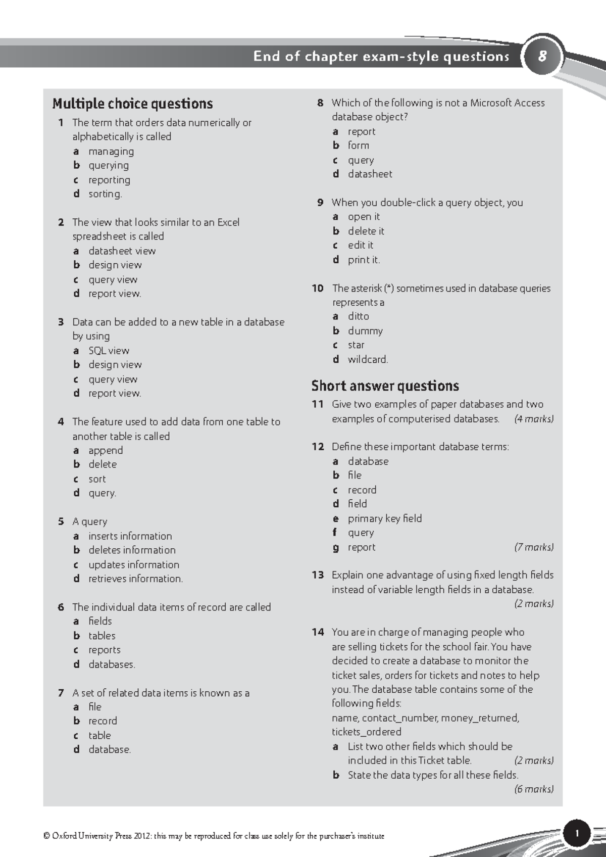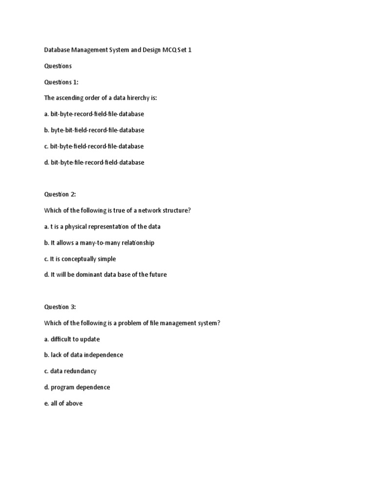 Database management system mcq | dbms mcq | mcq on database management ...