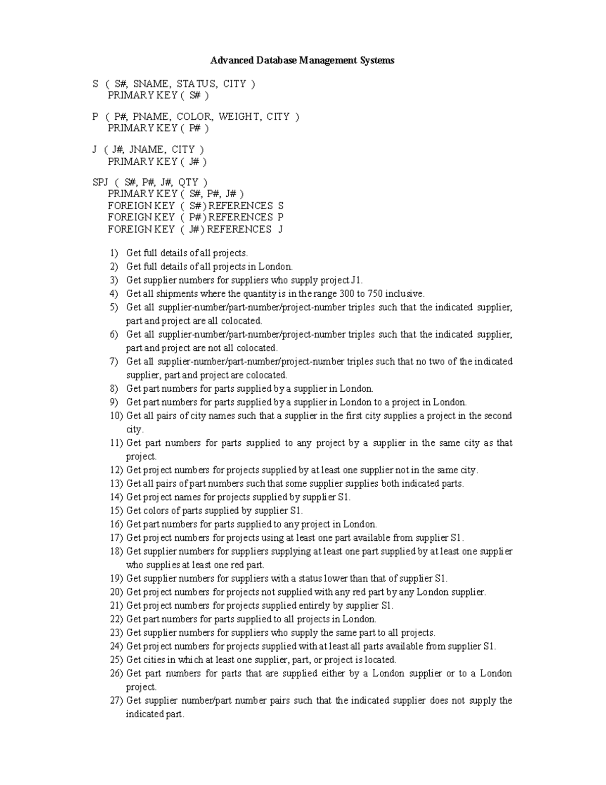 Advanced Database Management Systems: Practice Questions & Queries ...