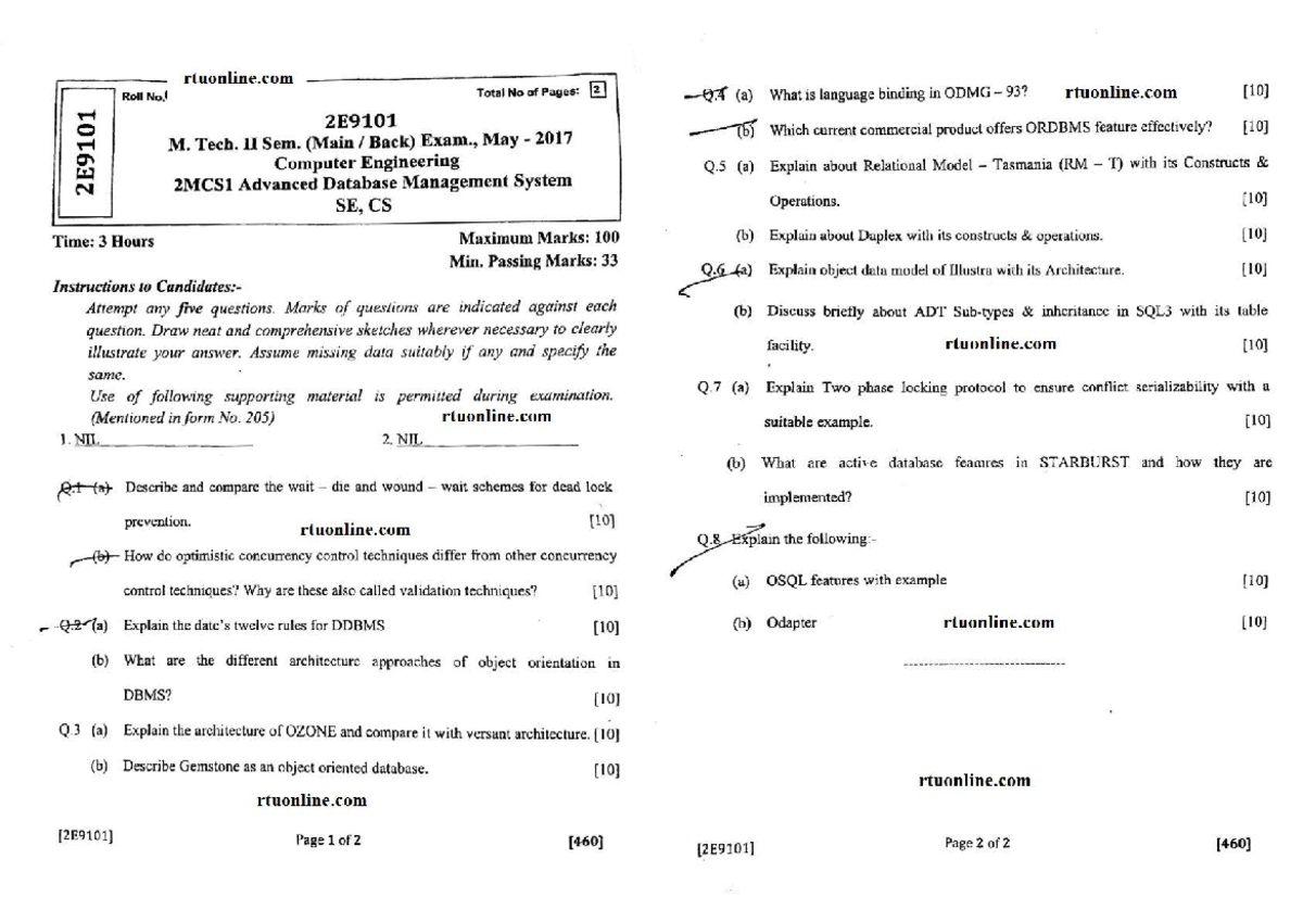 M.Tech II Sem Advanced Database Management System Exam May 2017 - Studocu