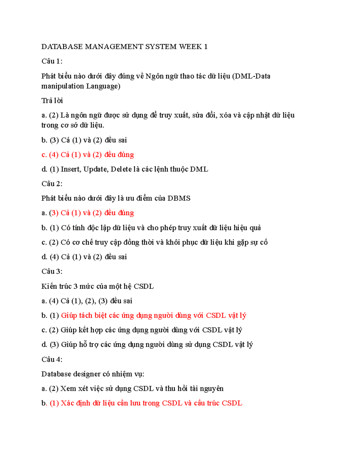 DATABASE MANAGEMENT SYSTEM WEEK 1 - Quiz 1 Questions and Answers - Studocu