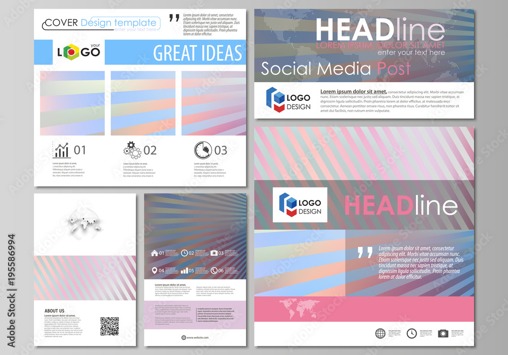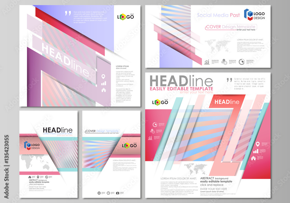 Social media posts set. Business templates. Easy editable abstract flat ...